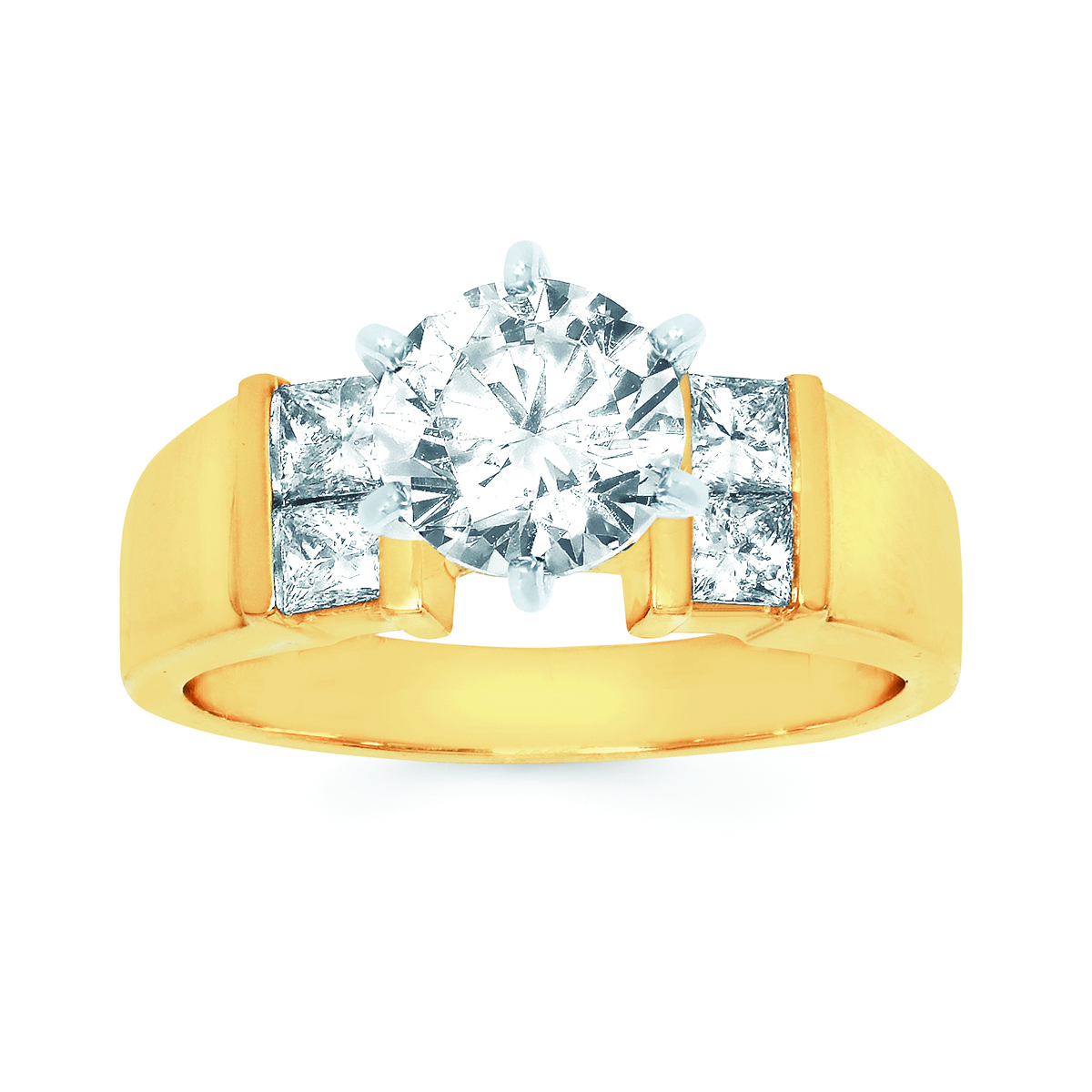 Engagement Ring Heritage Classic Bridal: 3/8 Ctw. Diamond Semi Mount shown with 2 Ct. Round Center Diamond in 14K Gold