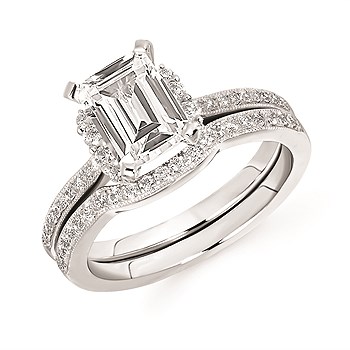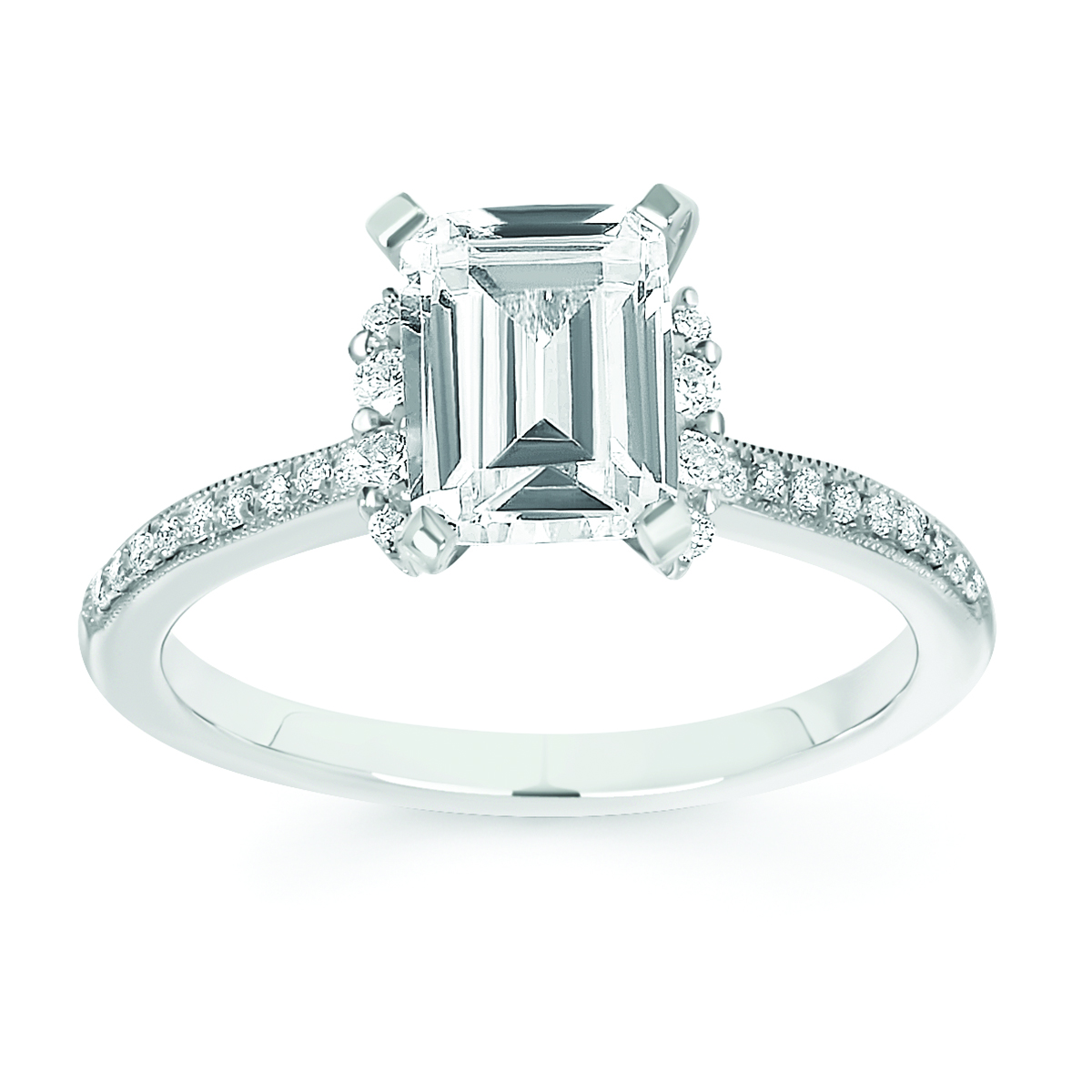 Engagement Ring Forever ElegantĀ® 1/5 Ctw. Diamond Semi Mount shown with 1 1/2 Ct. Emerald Cut Center Diamond in 14K Gold