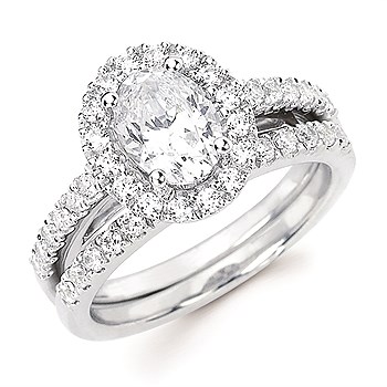 Halo Bridal: 5/8 Ctw. Diamond Halo Semi Mount Available For 1-1/4 Ct. Oval Center Diamond In 14K Gold