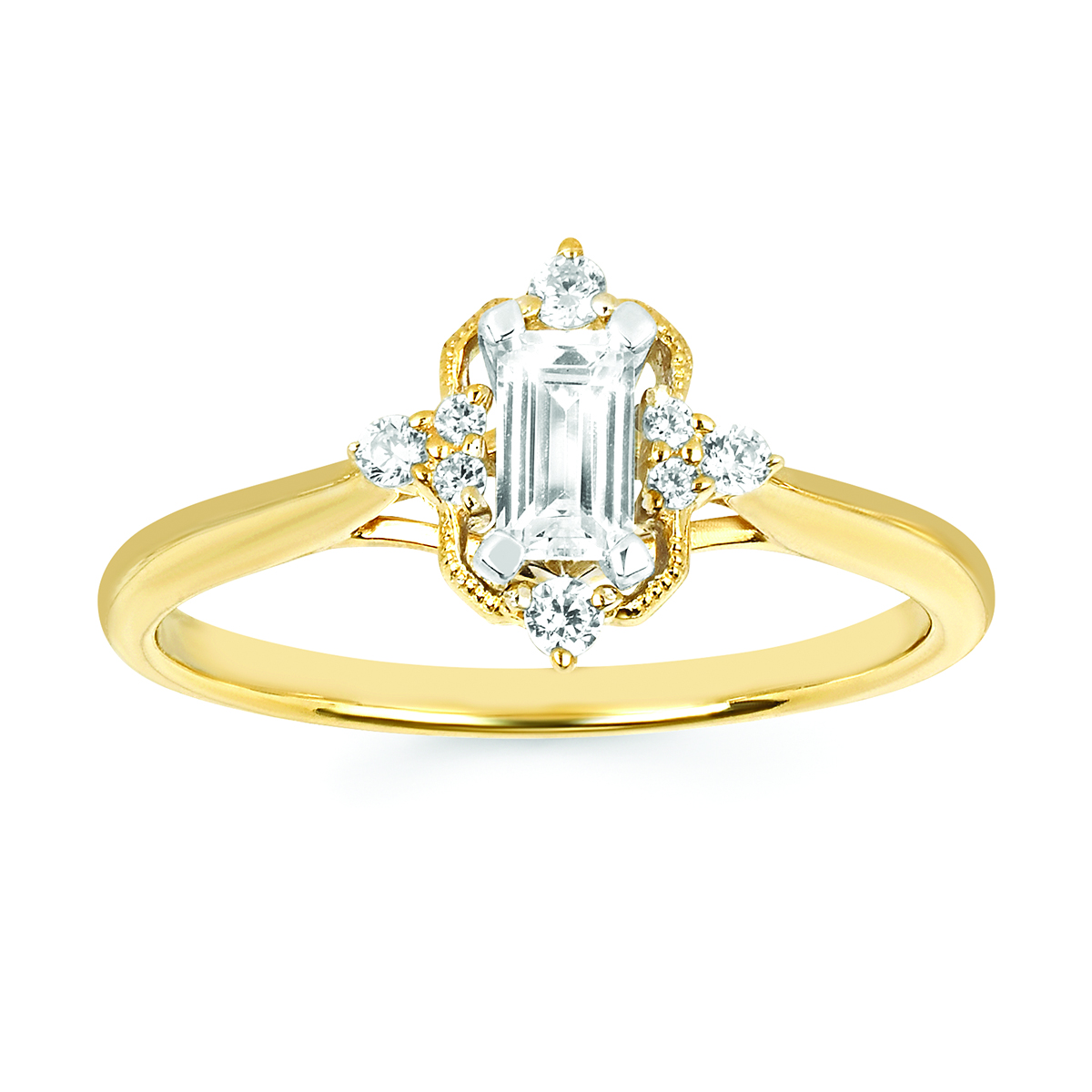 Engagement Ring Halo: 3/8 Ctw. Diamond Semi Mount Shown with 1/3 Emerald Cut Center Diamond in 14K Gold
