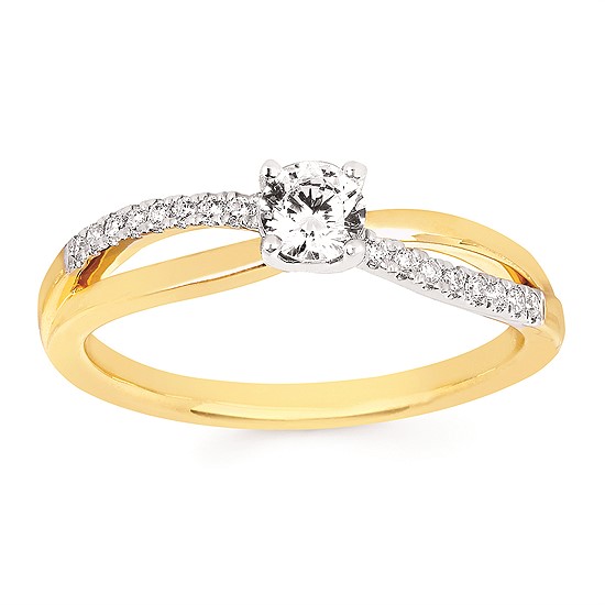 Engagement Ring Modern: .08 Ctw. Diamond Semi Mount Shown with 1/4 Round Center Diamond in 14K Gold